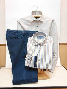 春の新しい商品をご紹介します。日本有数のデニム産地、岡山県の工場でつくった商品です。製品で洗いをかけ凹凸のある生地がより深みのある風合いに仕上がっています。