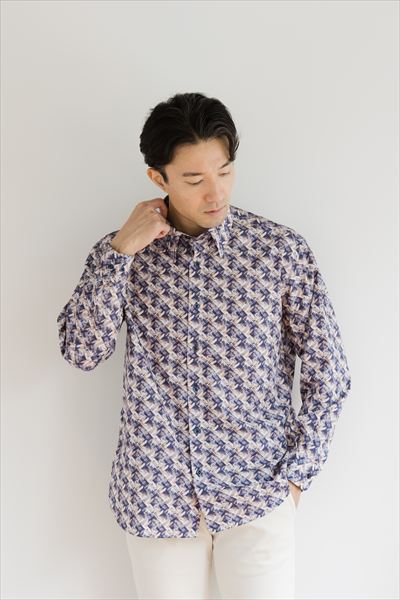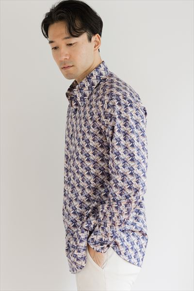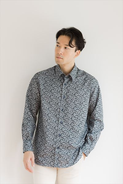 インポート生地カジュアルシャツ Color:ネイビー ¥26,400(tax in)