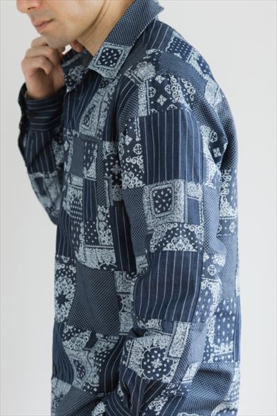 パッチワーク オーバーシャツ Color:ブルー ¥25,300(tax in)
