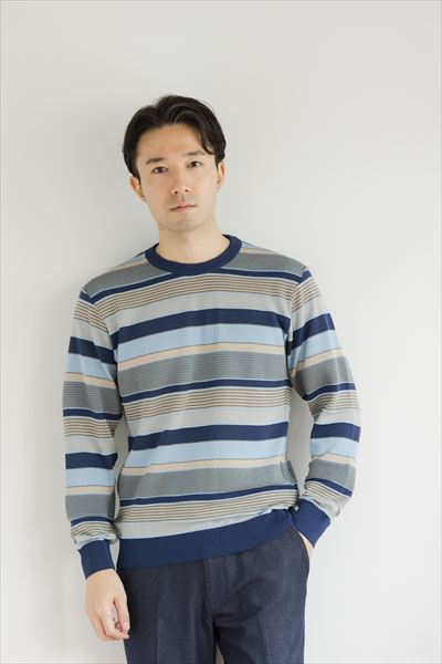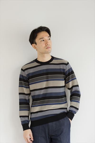 タック入りボーダー クルーネックセーター Color:ネイビー、グレー ¥27,500(tax in)