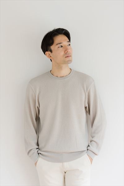 2色変形カノコ クルーネックセーター Color:グレー、クロ ¥26,400(tax in)